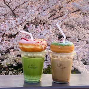 春を告げ、咲き乱れ 220円 散りゆく儚さがあるから美しい🌸 伏見の桜も散ってしまいましたが、 ドリンク片手に春の余韻に浸りながら お散歩をするのが気持ちのいいコースです🍩🥤🍃